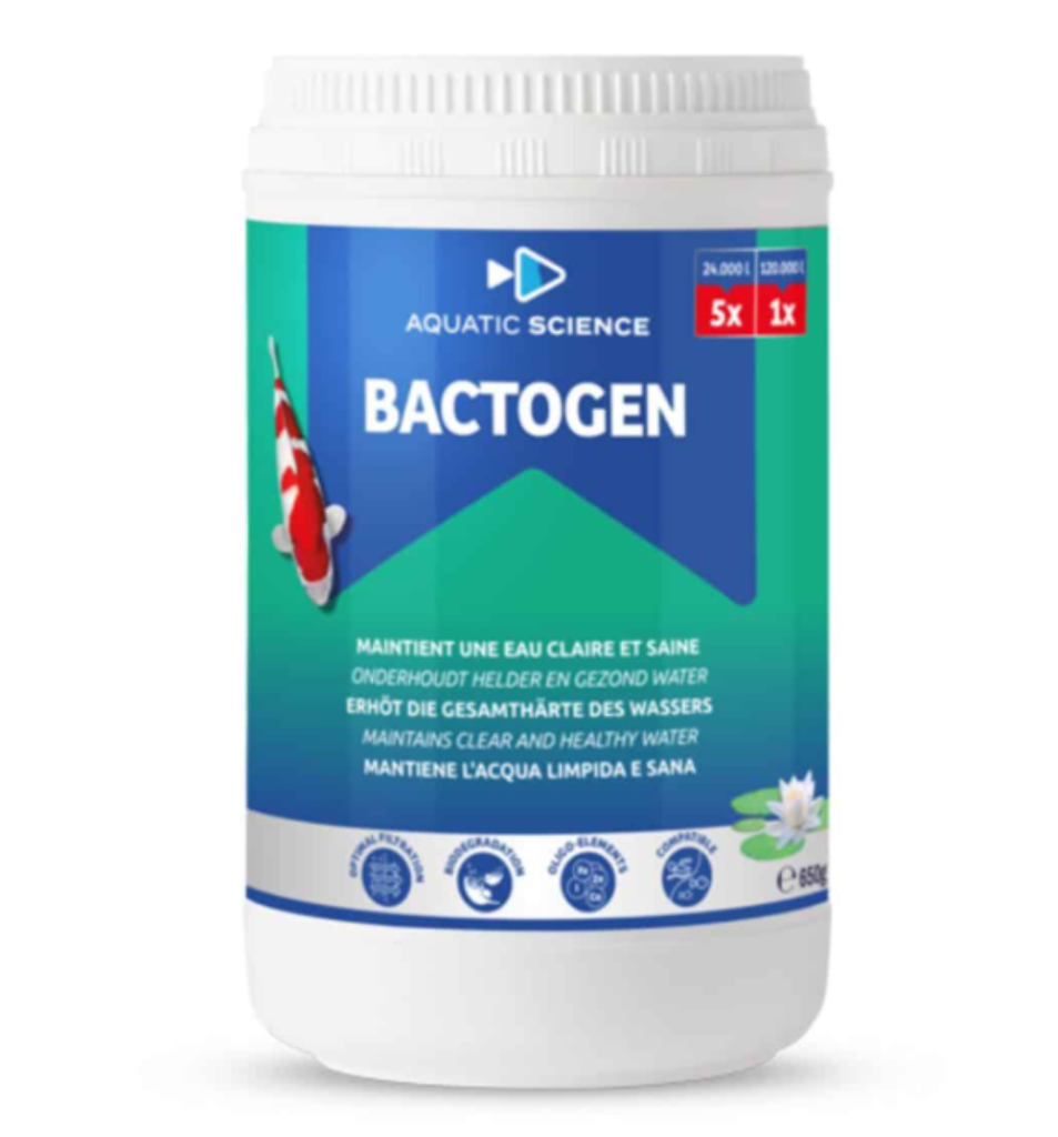 Mélange concentré de bactéries, de minéraux et oligo éléments, Bactogen est recommandé pour l’entretien de la filtration biologique durant presque toute l’année. Bactogen améliore la qualité biologique de l’eau ainsi que le cycle d’épuration des polluants organiques. A long terme, l’utilisation combinée de Bactogen et Biobooster+ avec nos aliments de haute qualité Aquatic Science permet de réduire significativement la pollution organique responsable des phénomènes d’envasement, d’encrassement des filtres ou d’accumulation d’ammoniaque toxique pour les poissons