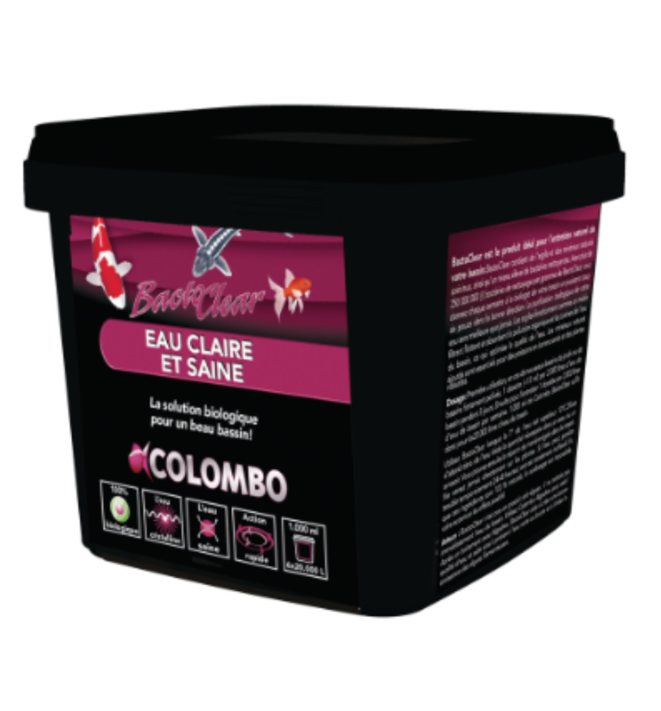 Bactoclear contient des argiles et minéraux naturels spéciaux, et une haute dose de bactéries purifiantes. L’argile agit comme un média filtrant flottant et absorbe directement les polluants et toxines organiques dans le bassin. Les minéraux naturels ajoutés sont essentiels pour les poissons et les plantes. Les bactéries purifiantes nettoient le bassin.